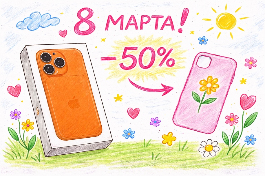7, 8 и 9 марта при покупке техники Apple, вы можете купить чехол, ремешок или дополнительный аккумулятор со скидкой 50%. Мы сделаем скидку на любой аксессуар к вашем новому гаджету!